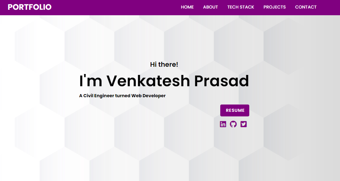 I'm Venkatesh Prasad from Bangalore, and I build cool web apps. I really enjoy learning languages and frameworks like JavaScript and React. I also enjoy building MERN applications.
