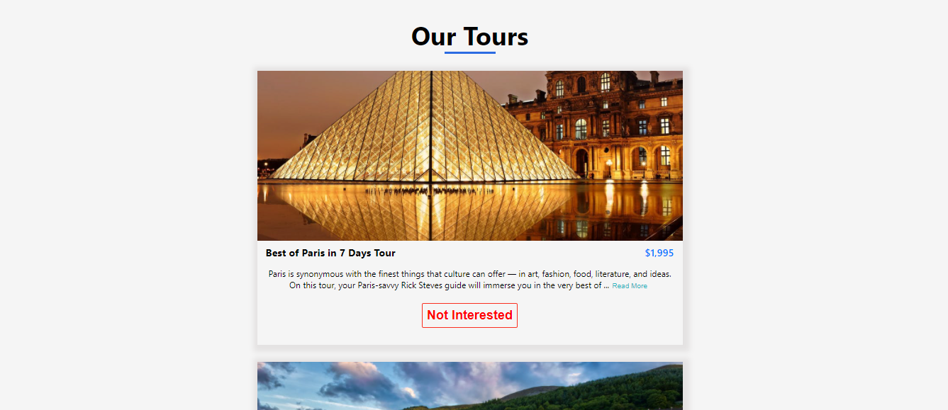 Created a Tours app, which helps users to read more about the new places for the vacation. And can remove the tours if no..