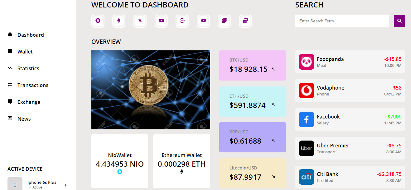 Built an Cryptocurrency Dashboard using React JS, designed the website using pure css.