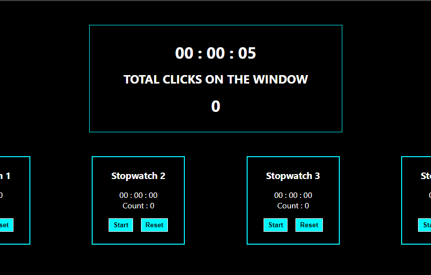 App contains a total of 5 stop watches and 5 click counters Which counts number of clicks made on a window and...